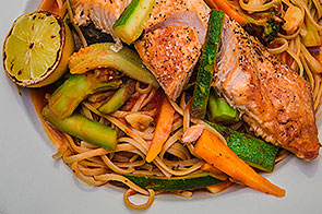 Grilled Salmon $20Served with pasta or sautéed vegetable